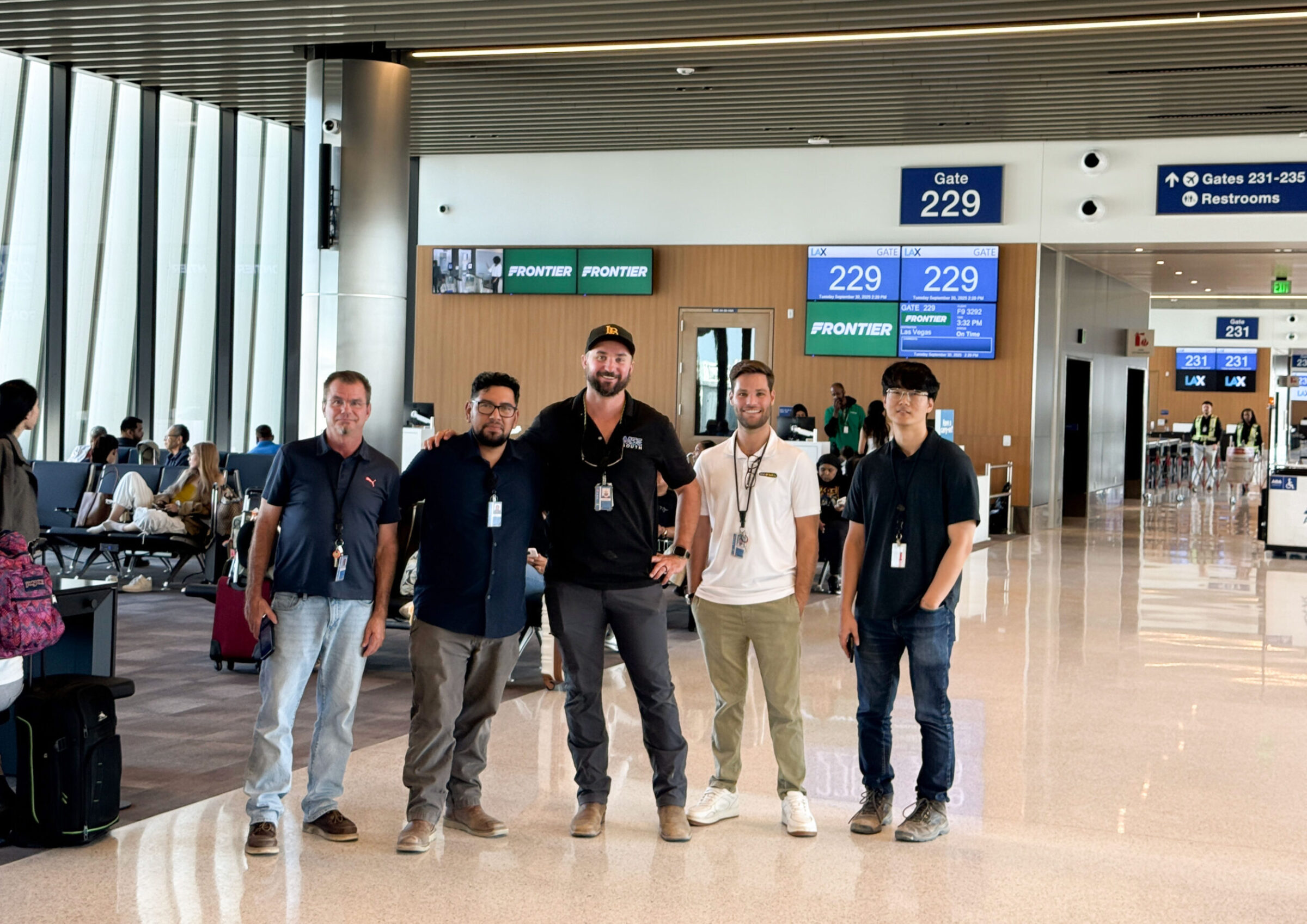 September 30, 2025 – MSC South team celebrates the first operational milestone at Gate 229, as Frontier Airlines departs for Las Vegas. (Photo courtesy of Jim Nelson)