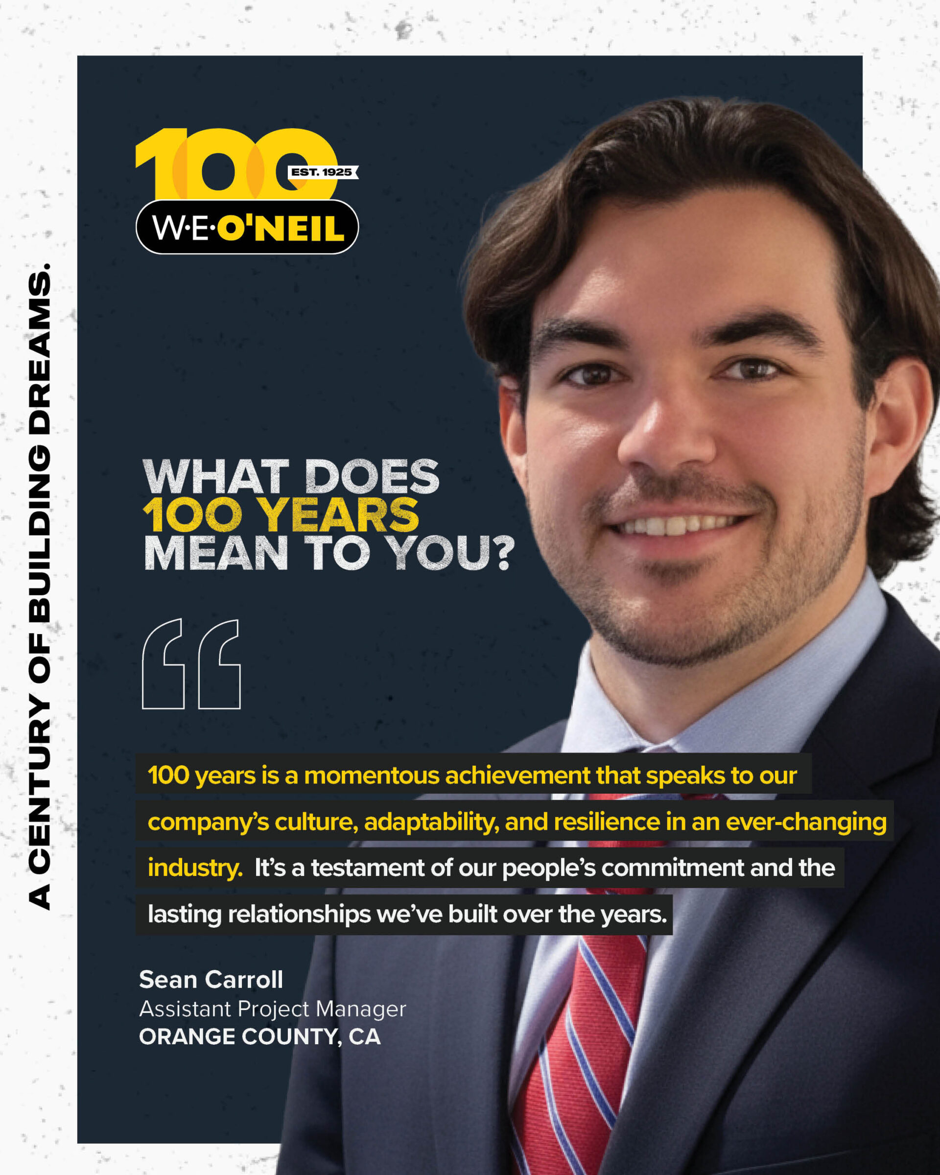 At W.E. O’Neil, people have always come first—for 100 years and counting. Our legacy is built on supporting our employees, strengthening relationships, and staying true to our core commitment: WE Value People. WE Build Dreams.