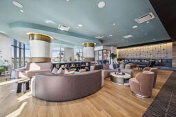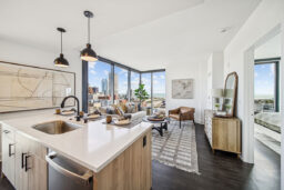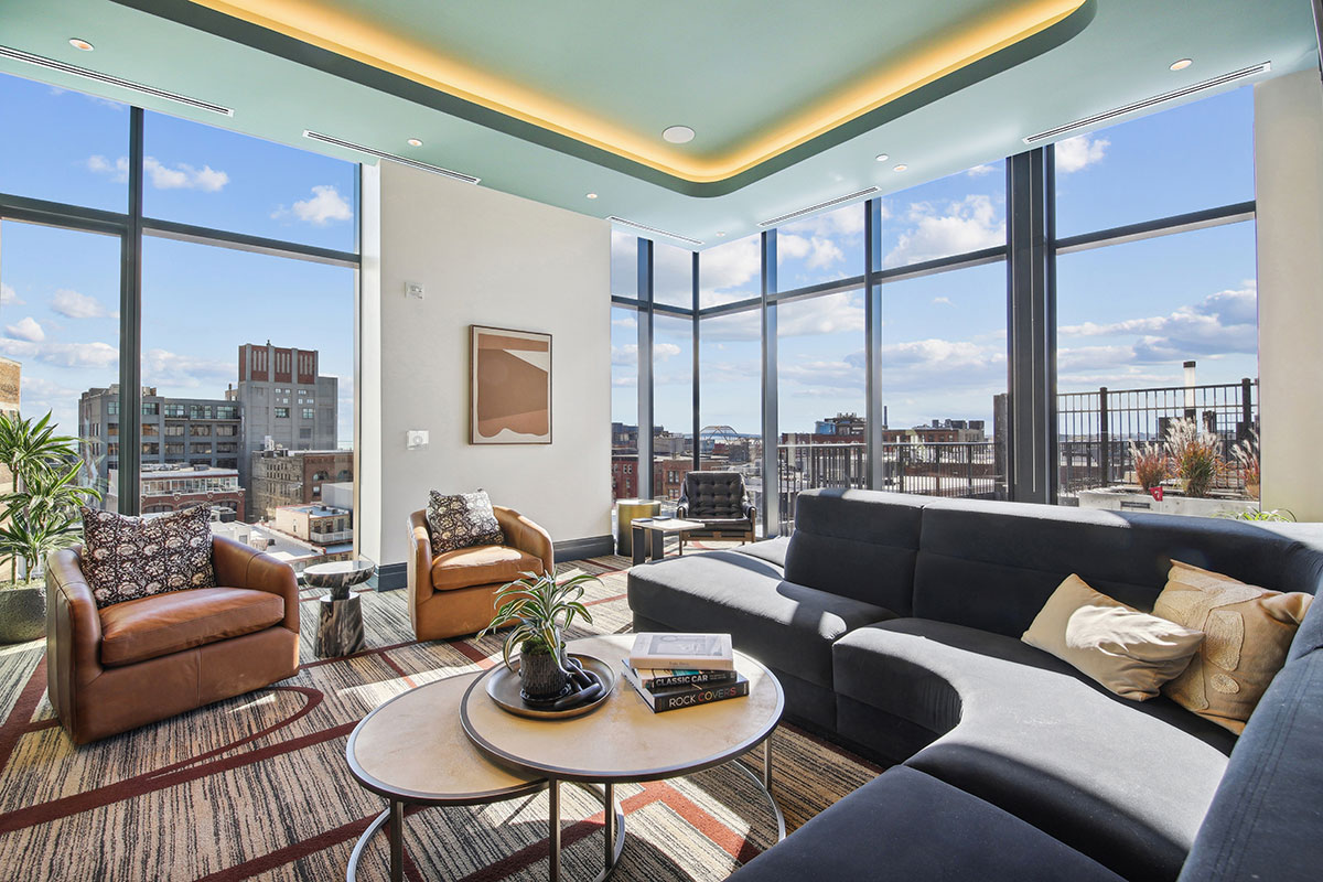 Designed with best-in-market finishes, the tower features an elevated amenity floor that includes a club-quality fitness center, co-working space, a resident lounge, and a landscaped plaza with a pool, grilling stations, cabanas, and diverse seating options.