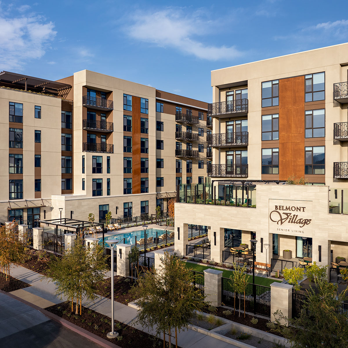 As part of our longstanding partnership with Belmont Village Senior Living, we constructed Belmont Village San Ramon, a new Senior Living Facility designed to deliver the right balance of luxury high-rise living with exceptional care and amenities for its residents to thrive in their overall well-being. The facility has a 175,320 SF six-story complex that boasts 177 units for independent living and 183 beds for assisted living and memory care.