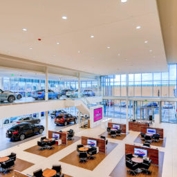 BMW of Denver Downtown is a 71,875 SF dealership that features a two-story showroom with glass-enclosed vehicle lifts, state-of-the-art interior offices, conference areas, and training spaces.