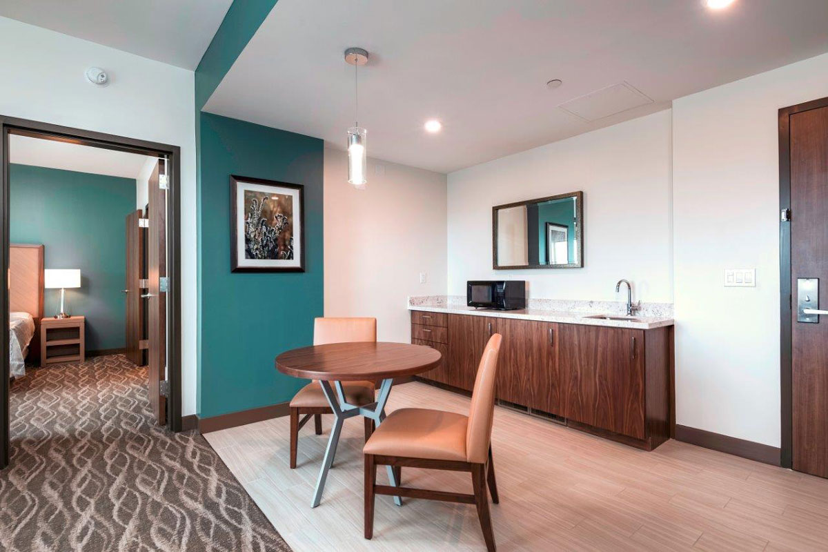 The 32,330 SF four-story 57-key hotel is wood-framed Type V construction and includes guest rooms, support rooms, hotel lobby, front desk operations, retail shop, 2,300 SF of casual dining, and recreation/amenities areas.