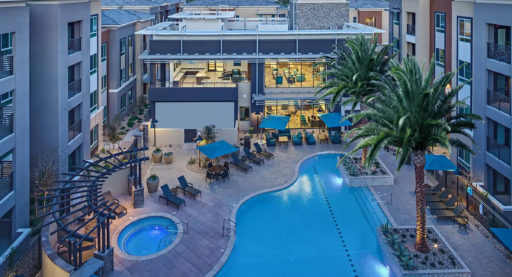 Building enclosure systems predominately consist of stucco with simulated brick veneer and a combination of concrete tile and built-up roofing systems. The apartment units include stainless steel Whirlpool appliances, vinyl plank flooring with carpeting in the bedrooms, quartz countertops, and backsplashes.