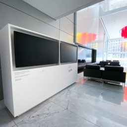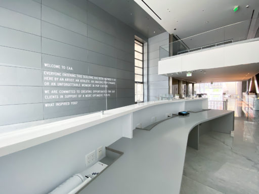 For this lobby renovation in Creative Artists Agency’s Class A office building in Los Angeles, W.E. O’Neil supplied and installed design-build electrical, new security turnstile, lobby desk, and associated finishes.