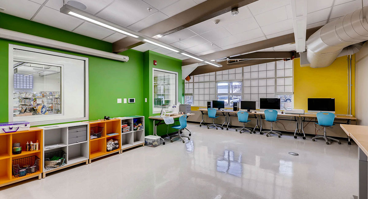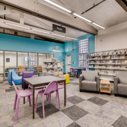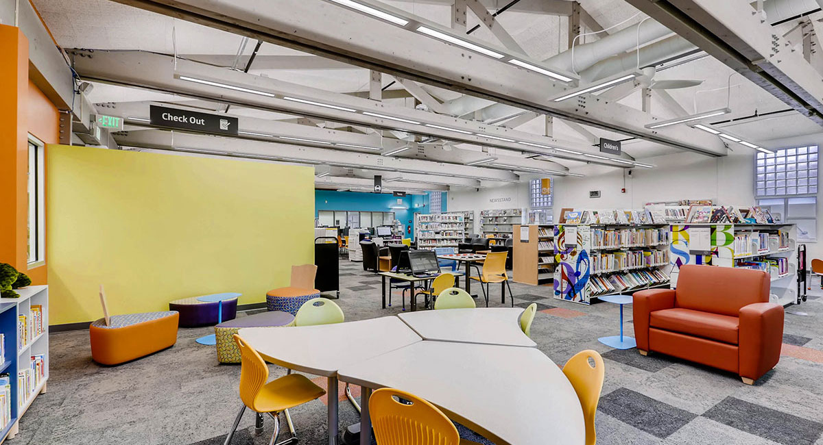 The highlight of the 12,340 SF renovation was the IDEALAB, a digital makerspace that includes a professional-quality soundproof studio where users can record music or make voice recordings. Also added was a new wireless system allowing visitors to connect to a fast and reliable internet network and 13 public access computers providing wireless connectivity and popular office software.